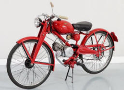 1954 - 57 Moto Guzzi Cardellino 65 Following the end of WW2 Moto Guzzi saw its' immediate future in the production of lightweight motorcycles. The predecessor to the Cardellino range was the Moto Leggera which proved to be very popular, selling around 200,000 units up to 1954 when it was updated & renamed the Cardellino. Although the original 2HP, 65cc two stroke engine & tank mounted gear change for the 3 speed gearbox were retained there were various improvements including rear dampers for a more comfortable ride. |